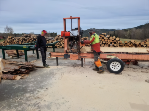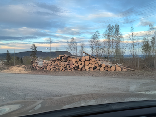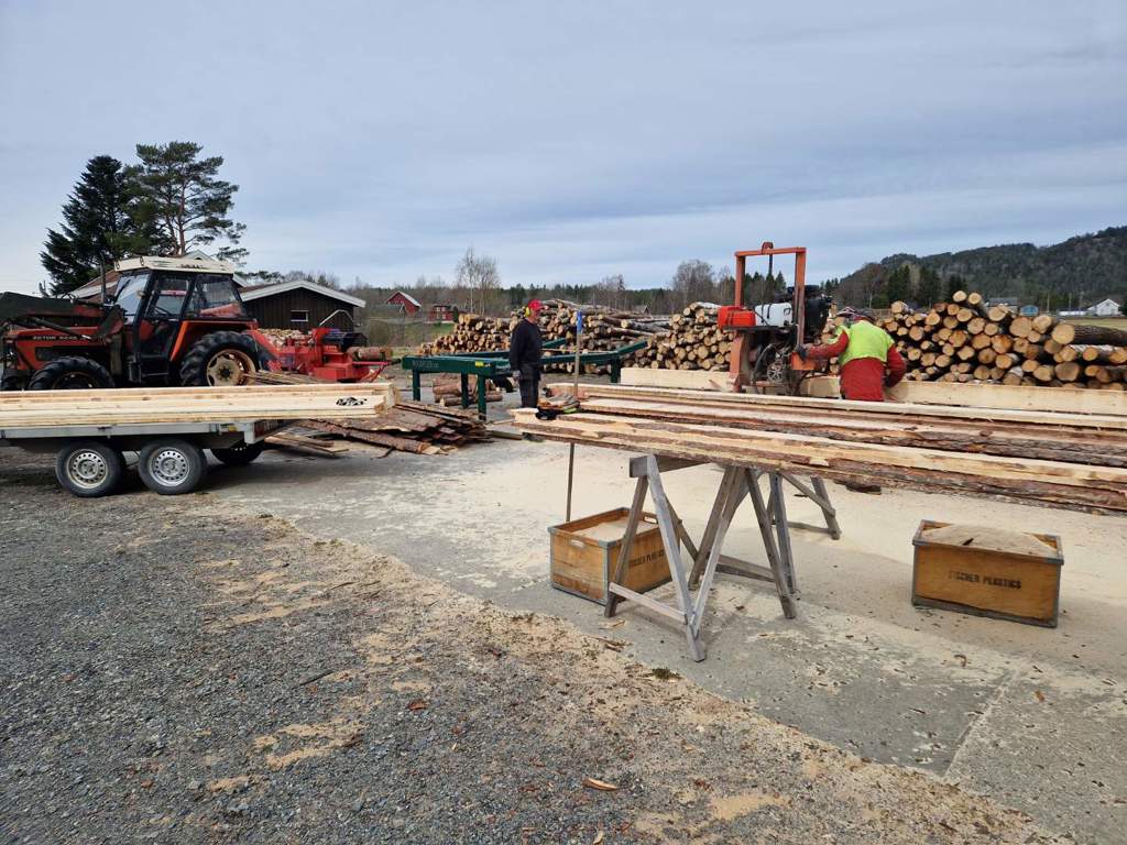 For eksempel har vi hentet materialer til ny gapahuk fra Aamodtsaga, som stables på Vøyen for tørking gjennom sommeren. Dette er viktig arbeid, som blant annet krever fjerning av bark fra kanten av materialene før omstabling.